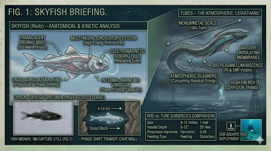 ![Technical schematic composite for [Think About It Alien Database] detailing Rods (Skyfish) exobiology and Tubes subspecies. Features FIG. 1 anatomical diagram, molecular mimicry breakdown, phase-shifting visualization, and a large cinematic visualization of a massive Tube entity flying over power lines.](https://thinkaboutit-aliens.com/wp-content/uploads/2025/09/unnamed-2026-03-04T102054.216.jpg)